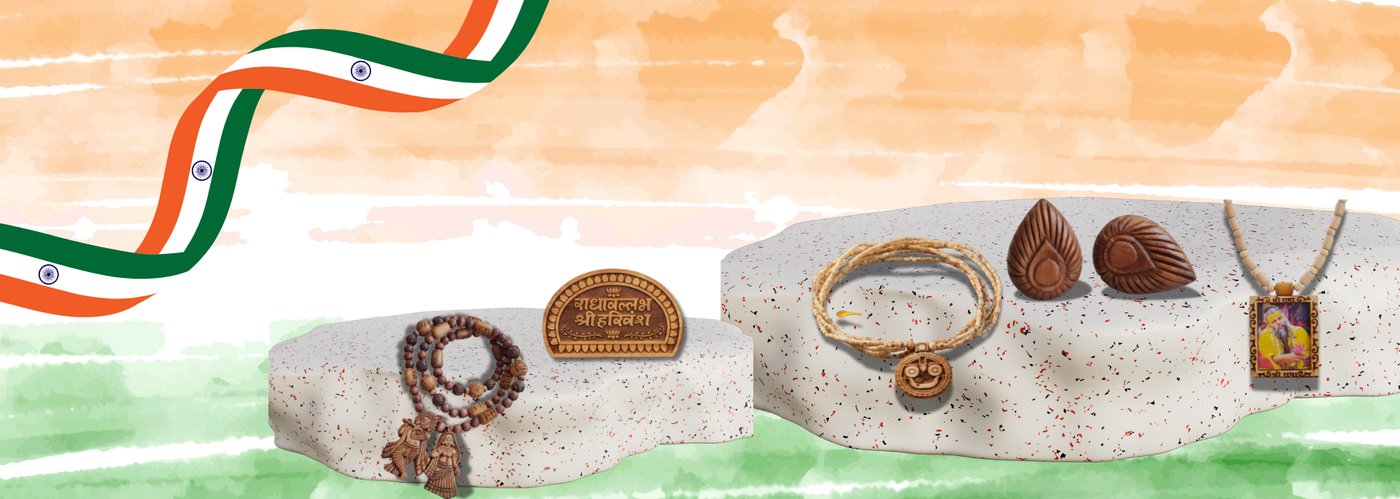 Shri Radha Krishna Naam Sewa Neem Wood Idol – 3x4 Inch Handcrafted Statue for Home Temple