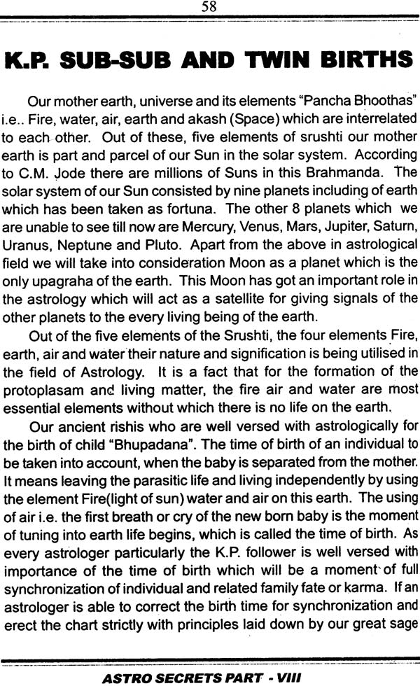 "অ্যাস্ট্রো সিক্রেটস অ্যান্ড কেপি - কেপি সাব - সাব (পর্ব ৮)" কে. সুব্রামানিয়ামের লেখা "কৃষ্ণমূর্তি পদ্ধাতি (কেপি) জ্যোতিষশাস্ত্র পদ্ধতির জটিলতাগুলি গভীরভাবে ব্যাখ্যা করেছেন, চার্ট বিশ্লেষণের উপ এবং উপ-উপ স্তরের উপর আলোকপাত করেছেন। এই খণ্ডে সাধারণত কিছু মূল বিষয়বস্তু আলোচনা করা হয়েছে:
