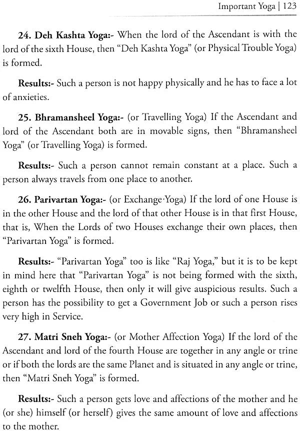 - লেখক আরও ব্যাখ্যা করবেন যে বিভিন্ন ঘরে গ্রহের সংমিশ্রণ কীভাবে এই যোগগুলি গঠন করে এবং একজন ব্যক্তির ভাগ্যের উপর তাদের প্রভাব।