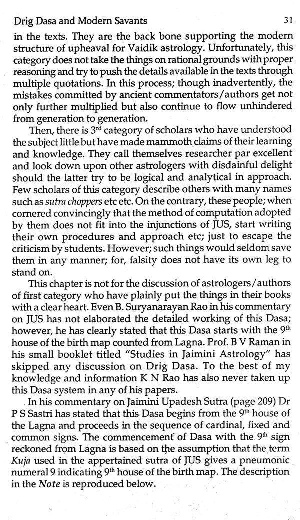 ইউ কে ঝা রচিত "জৈমিনীর ড্রিগ দশা" বইটি জৈমিনী জ্যোতিষশাস্ত্রের একটি শাখা, যা বৈদিক জ্যোতিষশাস্ত্রের দিক এবং গ্রহের মিথস্ক্রিয়ার তাৎপর্যের উপর জোর দেয়, তাতে বর্ণিত ড্রিগ দশা পদ্ধতির উপর আলোকপাত করা হয়েছে। এই বইটিতে ড্রিগ দশার সাথে সম্পর্কিত ভবিষ্যদ্বাণীমূলক কৌশলগুলি এবং রাশিফল ব্যাখ্যা করার জন্য কীভাবে সেগুলি প্রয়োগ করা যেতে পারে তা অন্বেষণ করা হয়েছে।