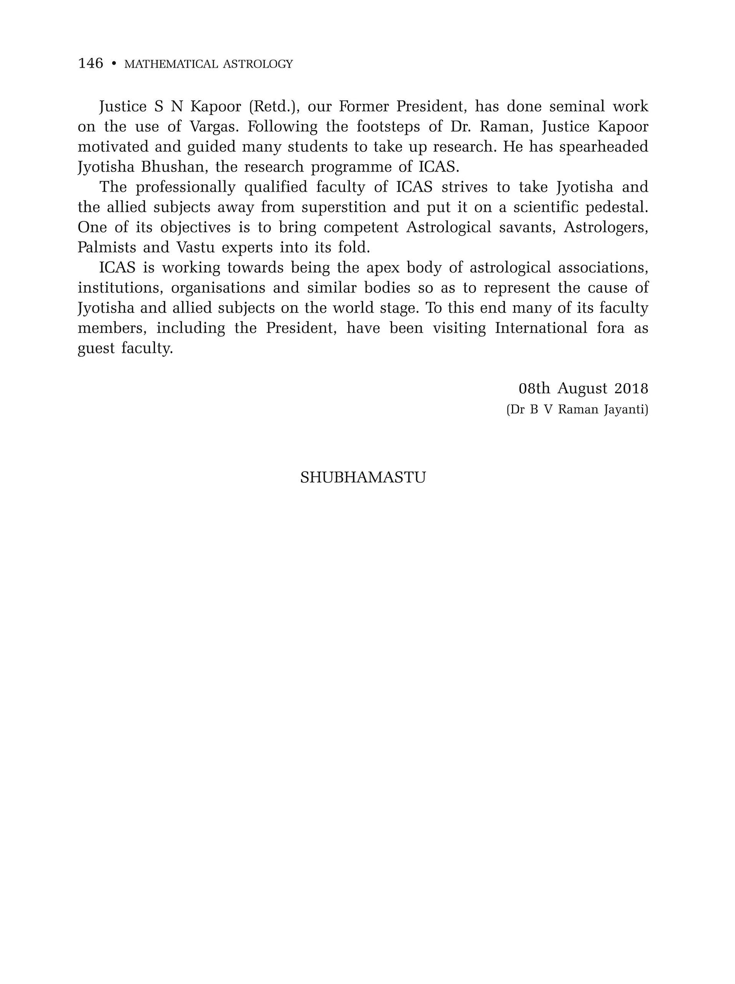বইটিতে বৈদিক জ্যোতিষশাস্ত্রে কার্যকর জ্যোতির্বিদ্যার দিকগুলি এবং রাশিফলের চার্ট এবং বিভাগীয় চার্ট তৈরির জন্য প্রয়োজনীয় গাণিতিক গণনার বর্ণনা দেওয়া হয়েছে। ভারতীয় ধারণা এবং সময়ের একক সম্পর্কেও আলোচনা করা হয়েছে।