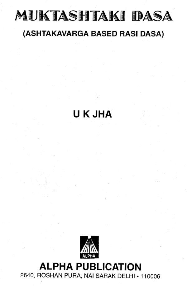 Book DescriptionAbout the Book The Dasa System dealt in this book is not found in any of the standard classical texts of astrology and the author learnt the same from one of his Tantric Guru he met during the course of his own Sadhana. The author has also brought out few other Dasa systems learnt from great Astro-Tantrics viz. Tara Dasa, Gangadhara Dasa etc. The calculation of this Dasa is based on Ashtaka Varga and the readers would appreciate how beautifully the benefic dots obtained in Sarvastaka Varga are converted into a Rashiyadi Dasa. First time in this book the readers would find the procedure for correct computation of Chara Karakas and the lovers of Jaimini astrology would certainly enjoy the detailed discussion on the same. The tribute appended here to late C S Patel would attract the astrologers who wish to do serious research in Ashtaka Varga System of prediction.About the Author UK Jha has authored number of beautiful es- says on abstruse astrological topics and his fresh approach and interpretations have al- ways delighted the readers at large. He does not need any separate introduction; for, the lovers of astrology remain always on look out for grabbing anything that comes from his pen. His books like "Utopia and Anarchy of Stars" and "Lost Horizon in Vedic Astrology have earned him recognition from erudite astrologers globally. His commentary on "Yoga Pushpanjali" and "Phala Deepikaa" are matchless works on the subject and has attracted scholars increasingly. His books on subjects like "Mandook Dasa", "Kaal Chakra Dasa" and "Drig Dasa" etc have impressed the scholars intensely. Here, in this book he has again brought out a Dasa system that accords new glory to Ashtaka Varga system of prediction.Preface Numerous types of Dasa systems are there in Vaidik astrology and each of these are meant for timing the events effectively. Many Dasa systems are found in the standard classical texts but there are also large number of Dasa systems practised secretly by the astro-scholars of Tantric cult residing in far flung corners of India and Nepal. The scribe has learnt over a dozen types of such Dasa systems from different Tantric pundits of India and Nepal. These Dasa systems are not found in any of the available texts of astrology. The scholars especially of secret Tantric cult seldom share informations with uninitiates and unworthy. And in this respect the author was fortunate that he could meet different Tantric pundits in different parts of this country at differ- ent interval of times and these Tantric teachers (Guru) found him worth teaching such rare Dasa systems. At a time when Vimshottari Dasa system was being used by majority of astrologers these Dasa systems remained closeted in the deeper chambers of heart of these Tantra sadhakas. Even today Rashiyadi (sign type) Dasa systems are scarcely used by the astrologers in general.