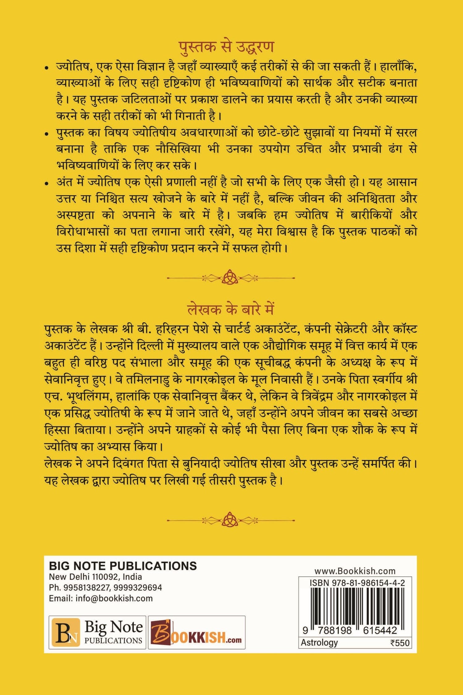 Phalit Jyotish Mein Baarikiyan Aur Virodhabhaas delves into the subtle intricacies and debates within predictive astrology (Phalit Jyotish). Written in Hindi, this book examines the nuanced details that often arise in astrological interpretations, highlighting areas of contradiction and differing viewpoints. It is a valuable resource for students, practitioners, and enthusiasts who wish to deepen their understanding of the precision and complexities involved in Jyotish predictions. With clear explanations and practical insights, the book serves as a guide to navigating the finer aspects of predictive astrology.