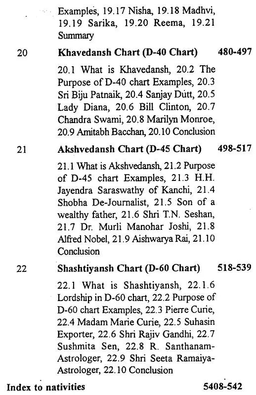 ১. **ভার্গাস বোঝা**: বৈদিক জ্যোতিষশাস্ত্রে ভার্গাস কী এবং তাদের ভূমিকার ব্যাখ্যা, বিভিন্ন ধরণের বিভাগীয় চার্ট সহ।