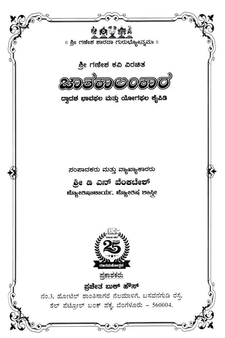 Jatakalankara- Dvadasa Bhavaphala Mattu Yogaphala Kaipidi (Kannada)