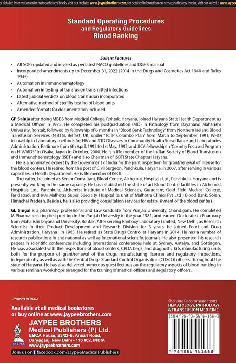 STANDARD OPERATING PROCEDURES AND REGULATORY GUIDELINES—BLOOD BANKING