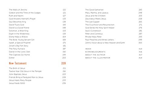 Essential stories from both the Old and New Testaments that are written and interpreted for biblical accuracy and age appropriateness for kids 4–8 Brief reflections at the end of each story to help kids understand God’s Word as it relates to them personally Prayers that encourage kids to speak openly and build a relationship with God Beautiful, full-page illustrations for each story to help children visualize and immerse themselves in God’s Word