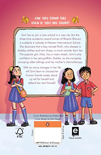 Details: Simi has to join a new school in a new city. But the three-time academic award winner of Bhaarti Bhavan is suddenly a nobody at Newton International School. She discovers that a boy named Parth who dresses in shabby clothes and torn shoes is much smarter than her. The popular girl Alisa has a mean streak. Simi's only confidant is her pet goldfish Goldie as she navigates annoying older siblings and her mother's chemotherapy. With so many changes in her life will Simi learn to choose her human friends wisely stand up tall for herself and defend her real friends?