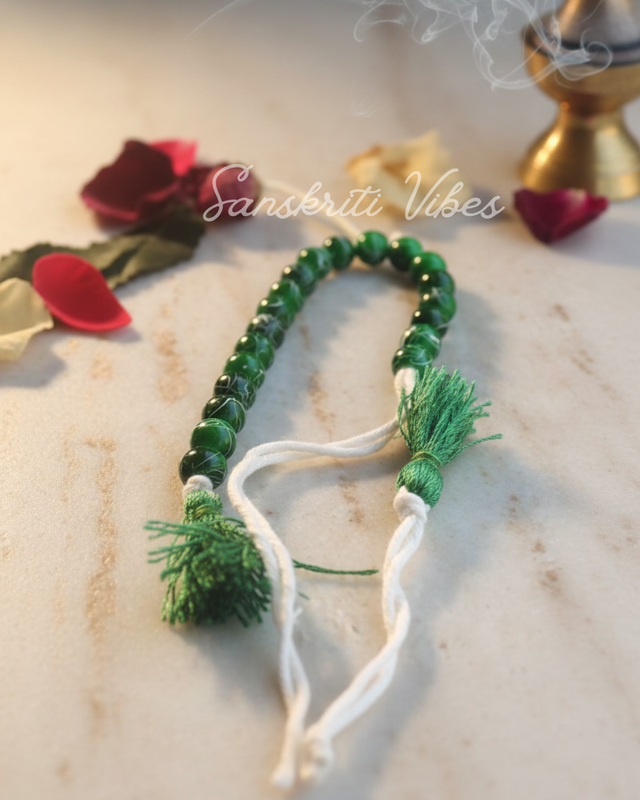 Enhance your spiritual practice with this Green White Beads Counter – Sakshi Mala, a beautifully crafted 20-bead mala designed for mantra chanting, meditation, and japa counting. Each 8 mm bead is carefully sized for comfortable handling, making it perfect for keeping track of your repetitions with ease.