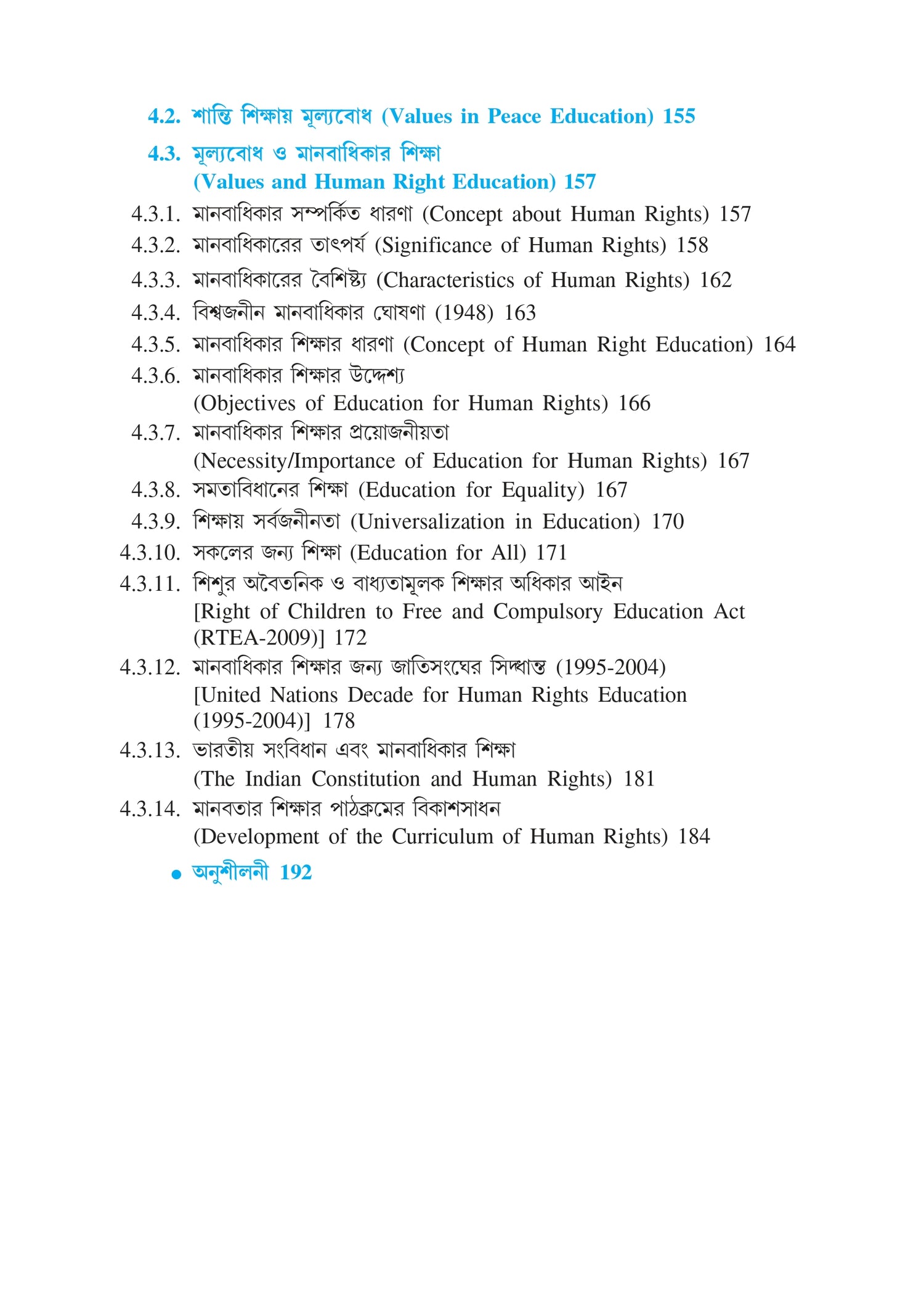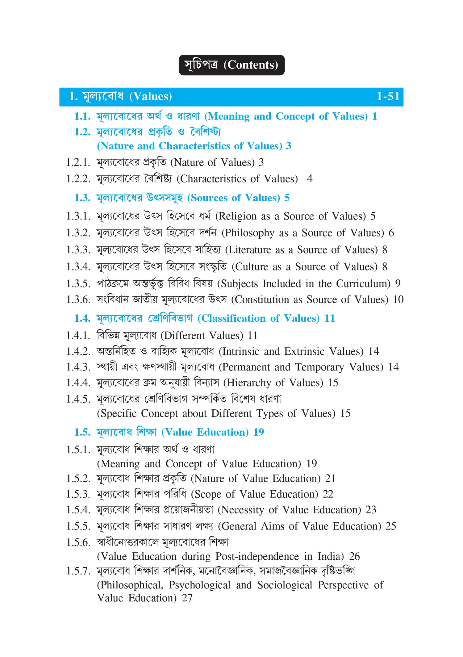 l মূল্যবোধ এবং মানবাধিকার শিক্ষা।