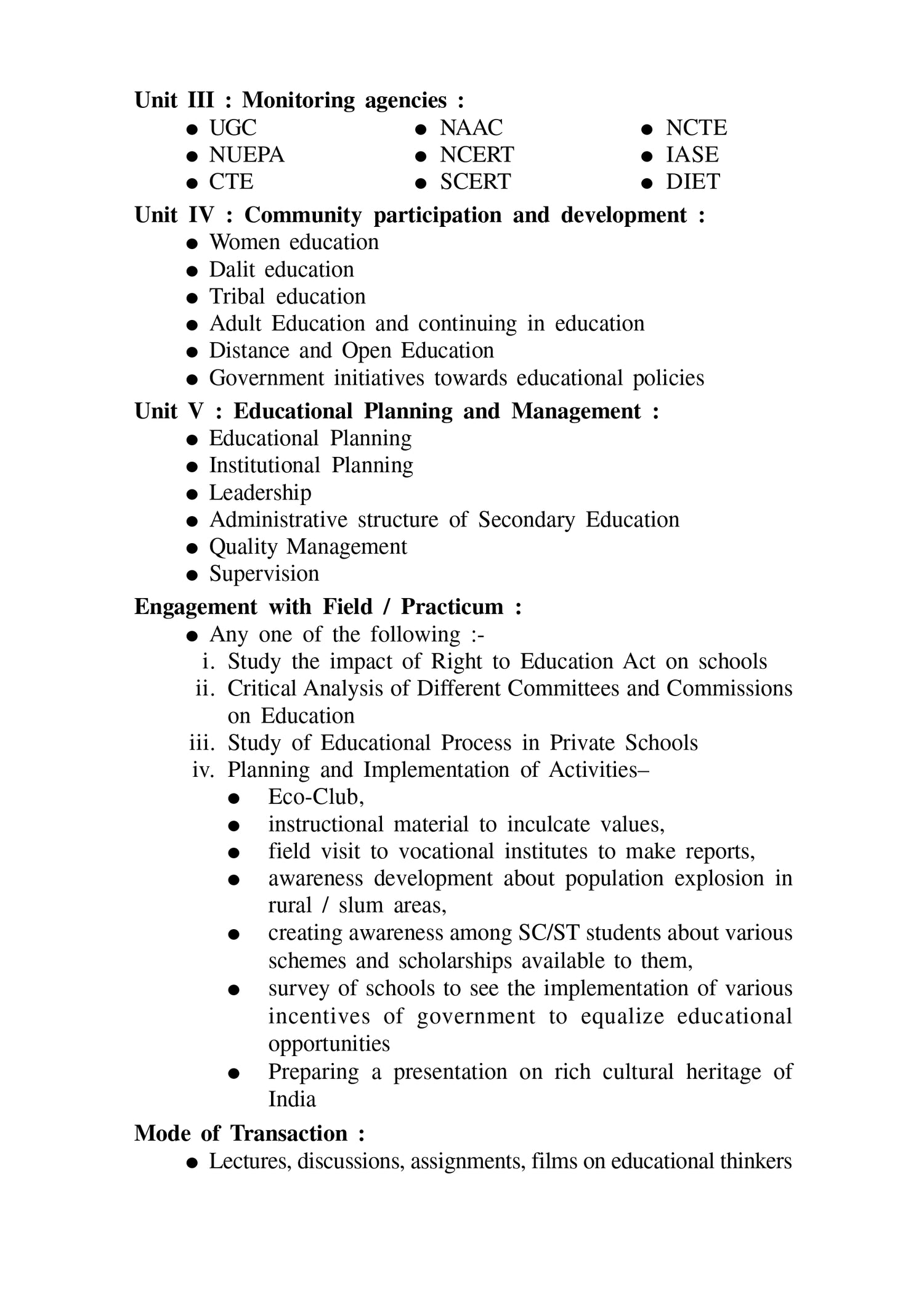 ইউনিট V: শিক্ষা পরিকল্পনা ও ব্যবস্থাপনা: