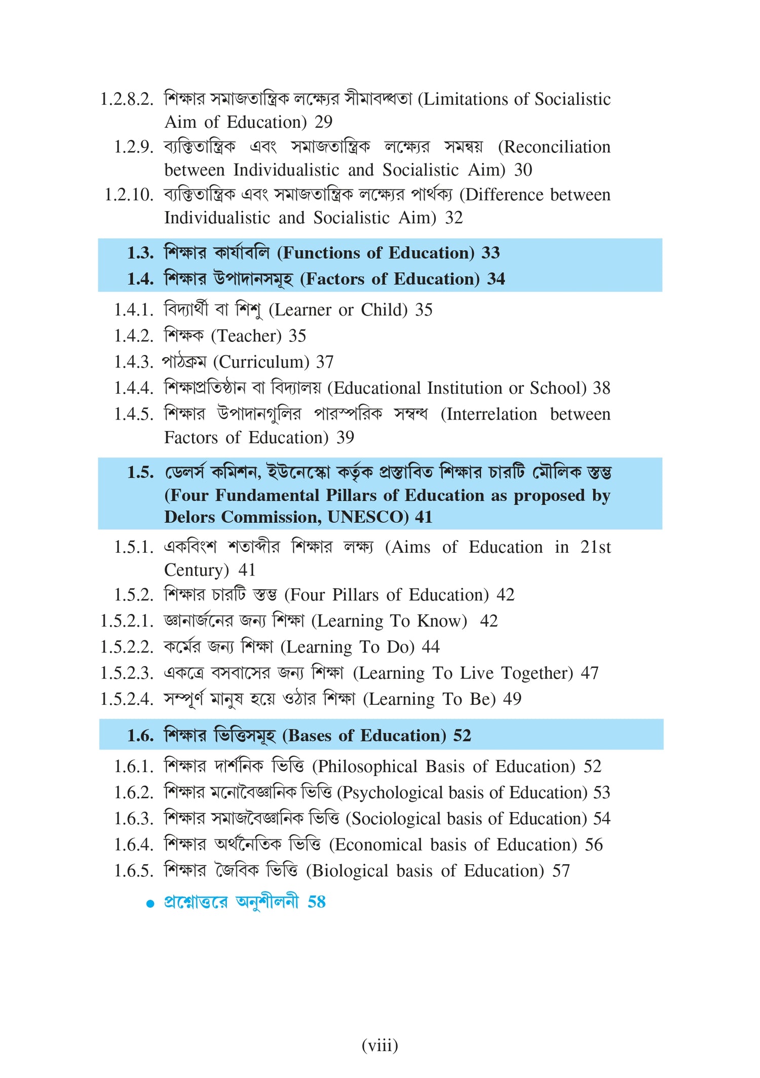 l শিক্ষার ভিত্তি: জৈবিক, মনস্তাত্ত্বিক, সমাজতাত্ত্বিক এবং অর্থনৈতিক।