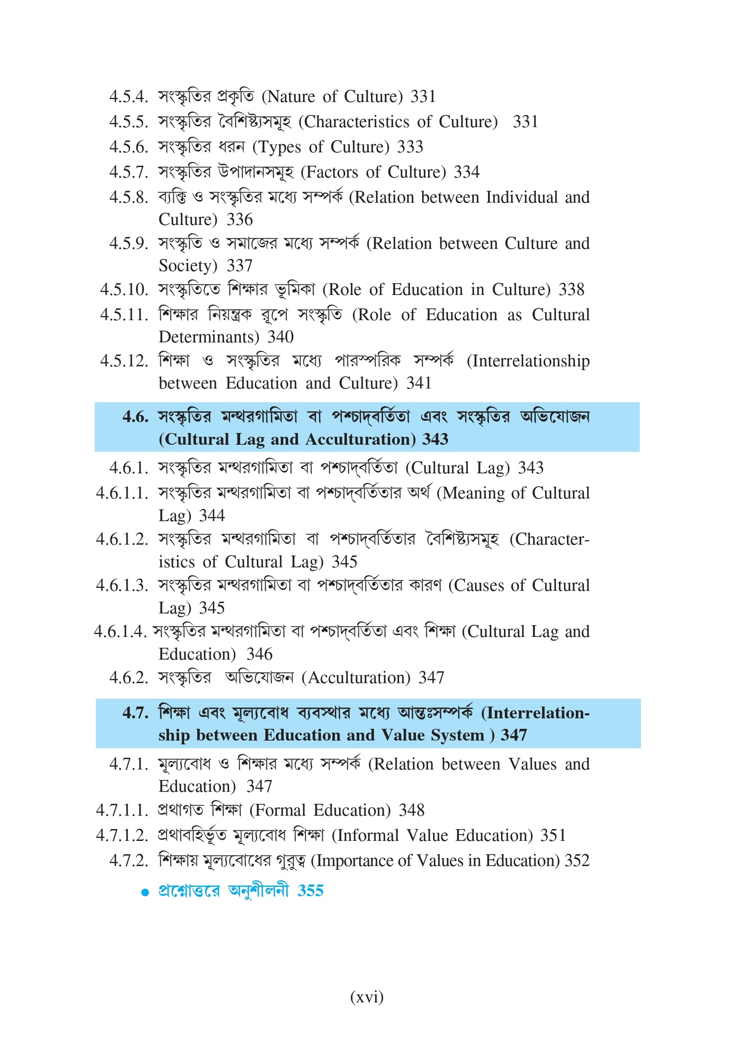 l সাংস্কৃতিক ব্যবধান এবং সঞ্চয়; শিক্ষা এবং মূল্যবোধের মধ্যে আন্তঃসম্পর্ক।