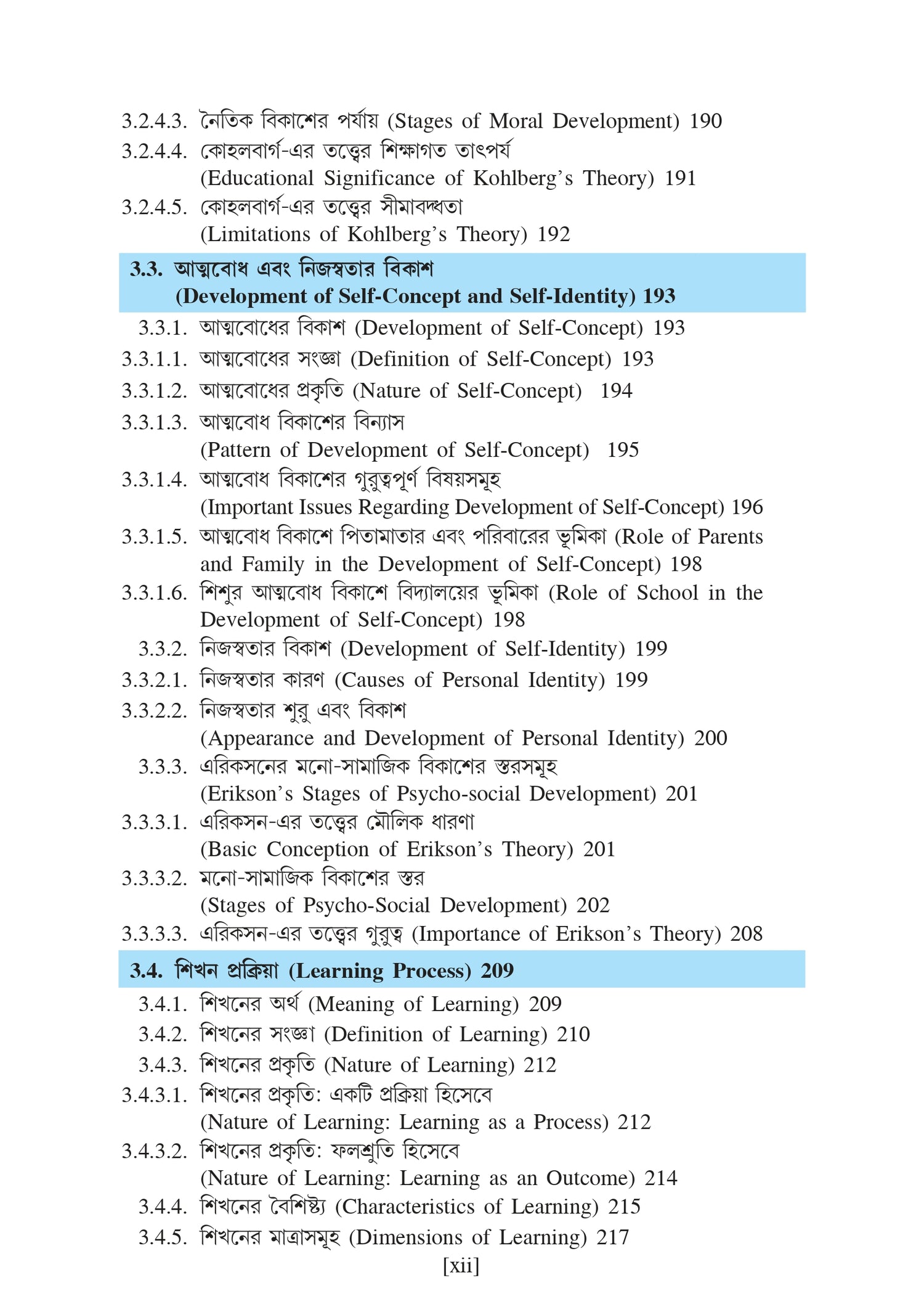 l উন্নয়নের তত্ত্ব—পিয়াগেটের জ্ঞানীয় বিকাশ, ভাইগটস্কির সামাজিক-সাংস্কৃতিক দৃষ্টিকোণ, ব্রনফেনব্রেনারের উন্নয়নের জৈব-পরিবেশগত মডেল, কোহলবার্গের নৈতিক বিকাশের তত্ত্ব