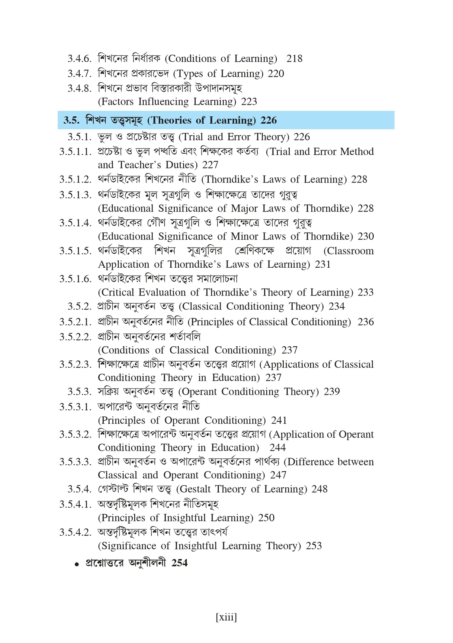 l শেখার তত্ত্ব: ট্রায়াল অ্যান্ড এরর, ক্লাসিক্যাল অ্যান্ড অপারেন্ট কন্ডিশনিং এবং জেস্টাল্ট শেখার তত্ত্ব।