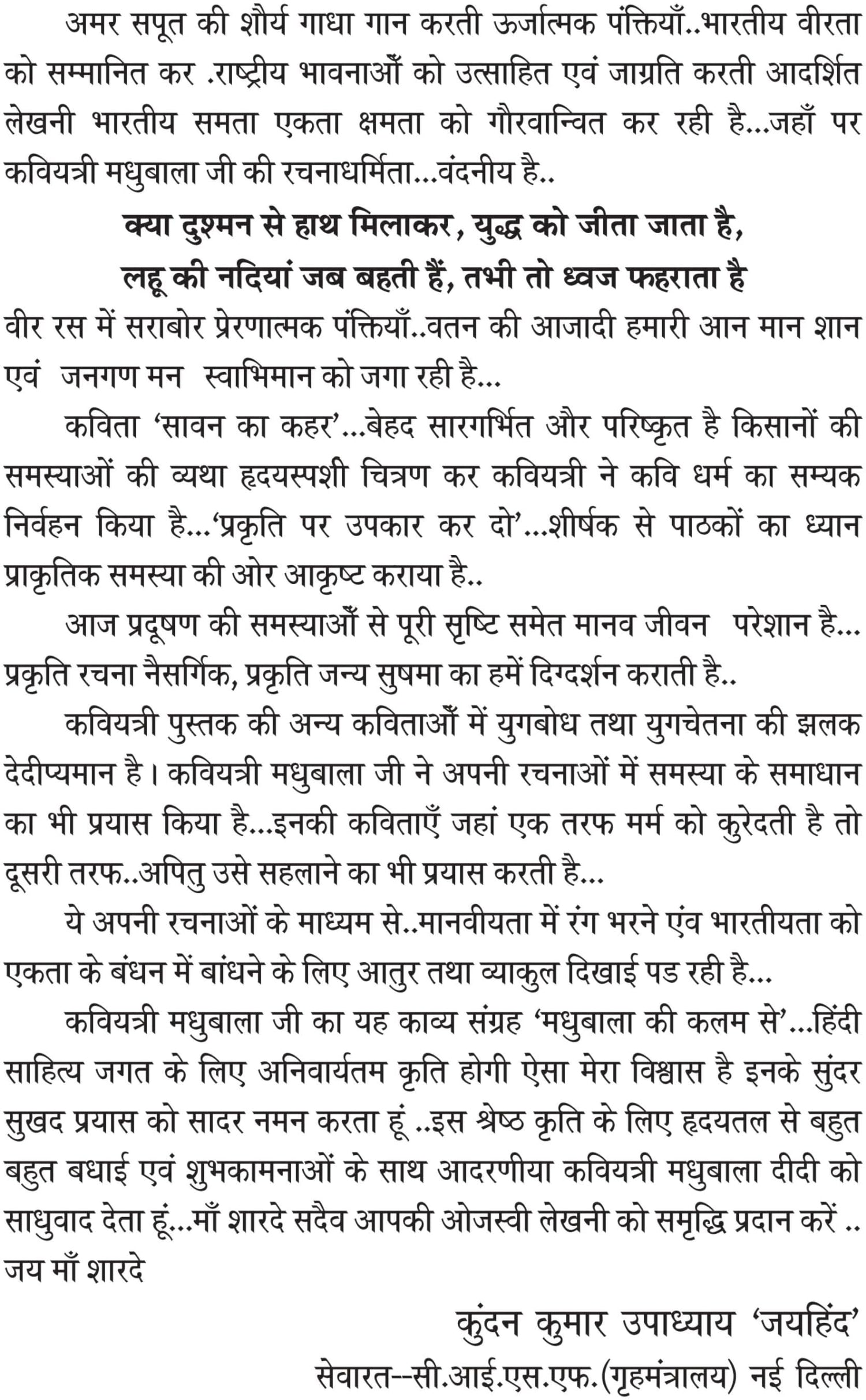 MADHUBALA KI KALAM SE [Hardcover] MADHU MADHUBALA