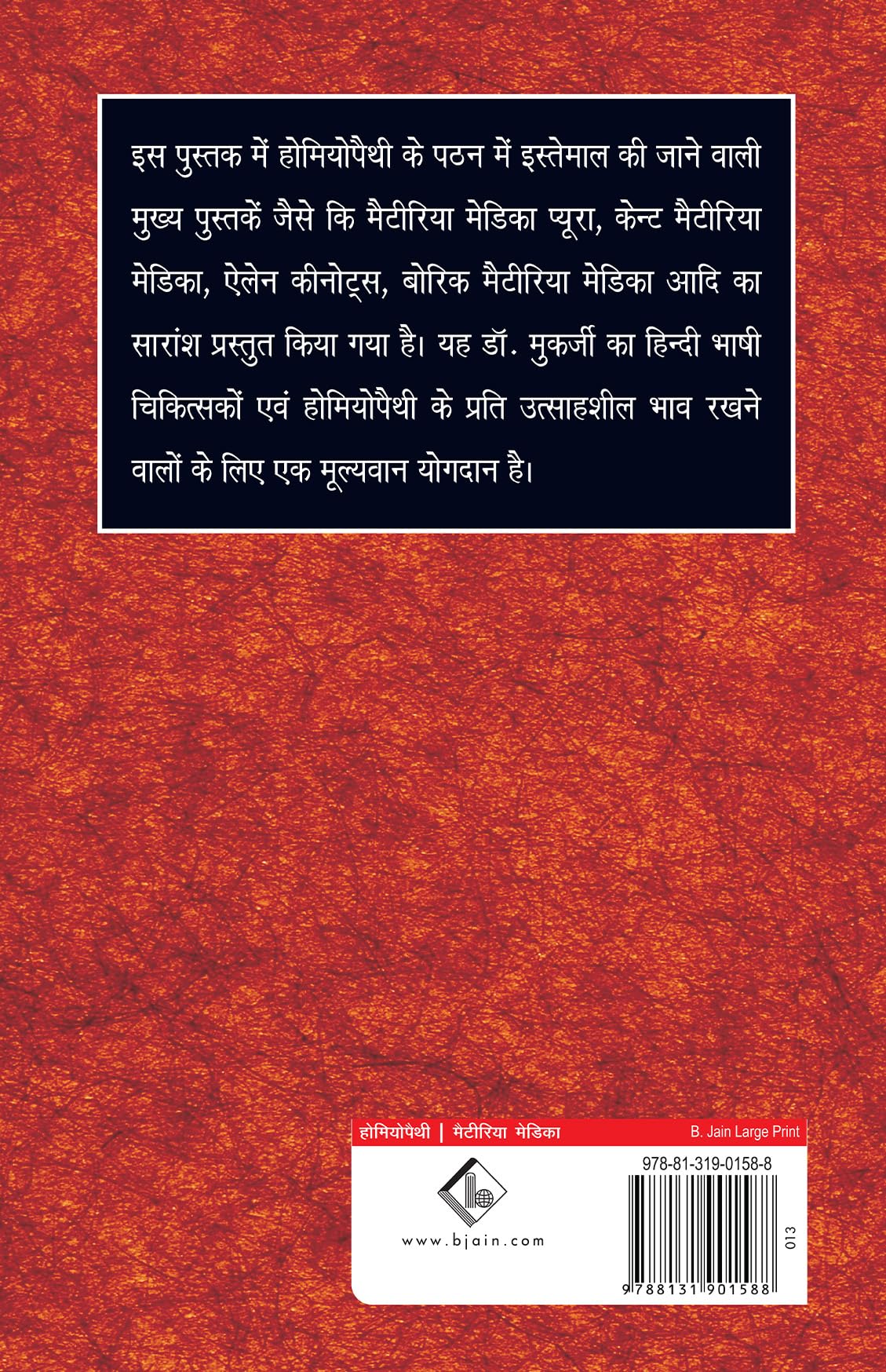 প্রধান বিন্দু! এই বইটিতে হোমিওপ্যাথির বার্তা ব্যবহার করার জন্য মূল বইগুলি যেমন কি ম্যাটিরিয়া মেডিকা প্যুরা, কেন্ট ম্যাটিরিয়া মেডিকা, এলেন কিনোটস, বোরিক ম্যাটিরিয়া মেডিকা ইত্যাদি কাসার সংক্ষেপে উপস্থাপন করা হয়েছে। এই বইটিতে মোট ৫২৪টি ওষুধের বিস্তারিত অধ্যয়ন করা হয়েছে। সত্যিকারের হওয়ার জন্য সকলকে বিভিন্ন উৎস থেকে জানা যায়। এটা ড. মুকর্জি কা हिन्दी भाषी चिकित्सकों एवं पैथी के प्रति उत्साहशील भावो होमियो करने के लिए एक मूल्यवान योगदान है।