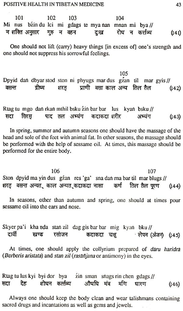 This important work explores how health is not merely the absence of disease, but a state of complete physical, mental, and spiritual well-being. Rooted in Ayurvedic and Tibetan frameworks, it emphasizes daily (Dinacharya), nightly (Ratricharya), and seasonal (Ritucharya) regimens, diet, conduct, and preventive lifestyle practices that promote a long, purposeful, and disease-free life.