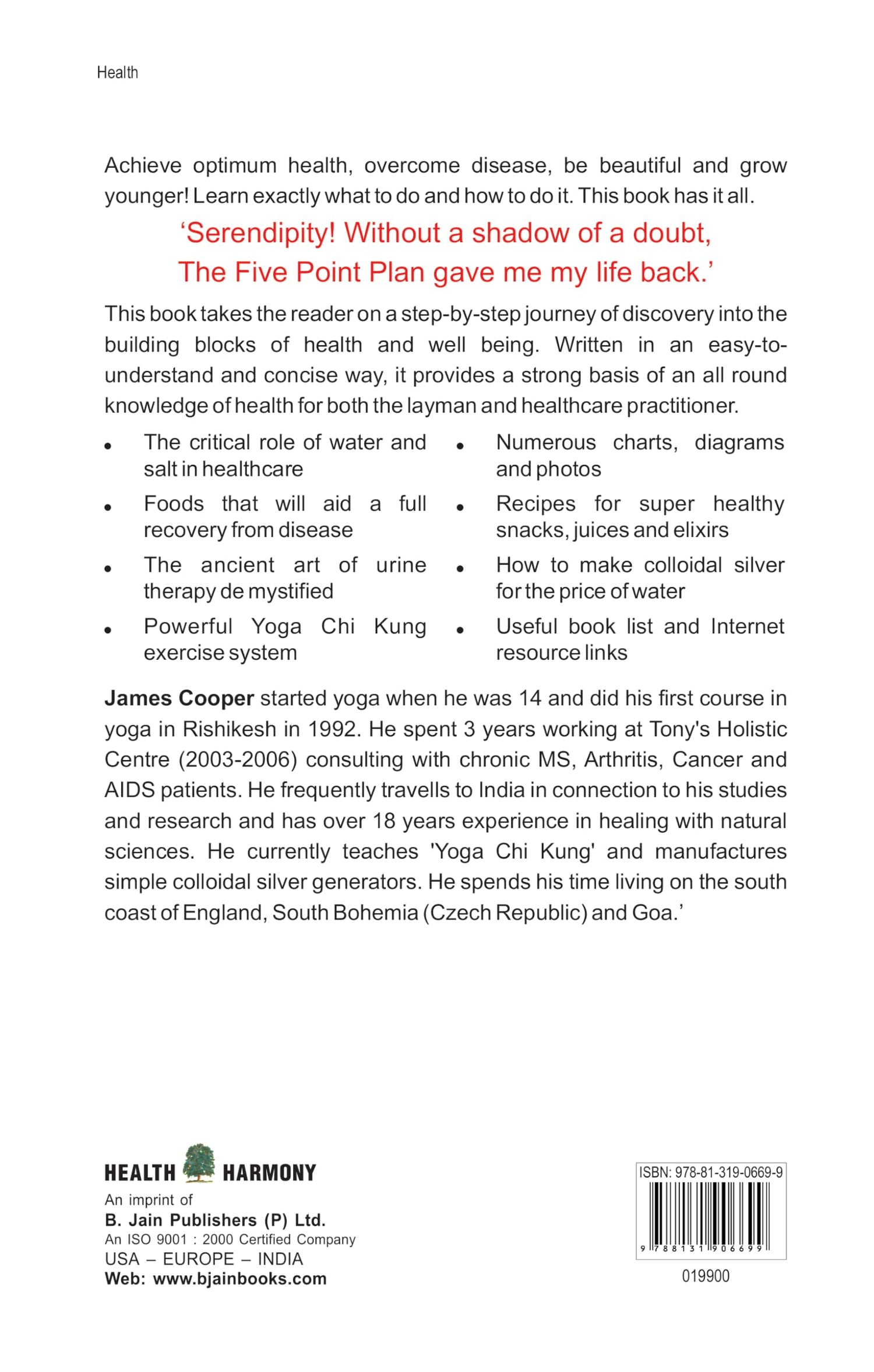 এই বইটি সর্বোত্তম স্বাস্থ্য অর্জন, রোগ কাটিয়ে ওঠা এবং সৌন্দর্য ও প্রাণশক্তি বৃদ্ধির জন্য একটি বিস্তৃত নির্দেশিকা প্রদান করে। এটি পাঠককে স্বাস্থ্য ও সুস্থতার ভিত্তি স্থাপনের একটি বিস্তারিত, ধাপে ধাপে যাত্রায় নিয়ে যায়। স্পষ্ট এবং সংক্ষিপ্তভাবে লেখা, এটি সাধারণ মানুষ এবং স্বাস্থ্যসেবা অনুশীলনকারীদের উভয়ের জন্যই গুরুত্বপূর্ণ অন্তর্দৃষ্টি প্রদান করে। মূল বিষয়গুলির মধ্যে রয়েছে স্বাস্থ্যসেবাতে জল এবং লবণের গুরুত্বপূর্ণ ভূমিকা, রোগ নিরাময়ে সহায়তাকারী খাবার, প্রস্রাব থেরাপির প্রাচীন অনুশীলন, একটি শক্তিশালী যোগ চি কুং ব্যায়াম ব্যবস্থা এবং আরও অনেক কিছু। বইটিতে অসংখ্য চার্ট, ডায়াগ্রাম এবং ছবি, স্বাস্থ্যকর খাবার, জুস এবং অমৃতের রেসিপি, পাশাপাশি বাড়িতে কলয়েডাল সিলভার তৈরির নির্দেশাবলীও রয়েছে।