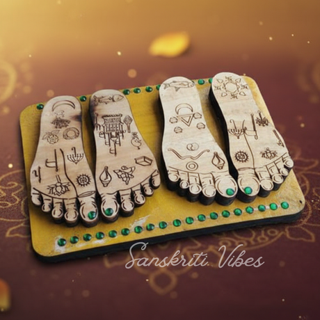 Shri Radha Krishna Charan Naam Sewa Neem Wood Idol Set – Handcrafted Statue for Home Temple