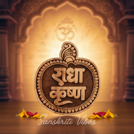 Shri Radha Krishna Naam Sewa Wooden Idol Set for Home Temple – Handcrafted Kadam, Neem & Tamal Wood