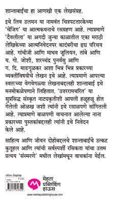 Shantabai's articles cover a wide range of literary figures, including Gandhi ji, Madhav Julien, Tambe, Y.G. Joshi, Sharatchandra Punarvasu, and G.D. Madgulkar, offering deep insights into their works. She also does not shy away from reflecting on her own writing journey, detailing the evolution of her work and her exposure to the Sanskrit drama Uttar Ram Charit. Additionally, she recalls the books she read at a young age, illustrating her early love for literature.