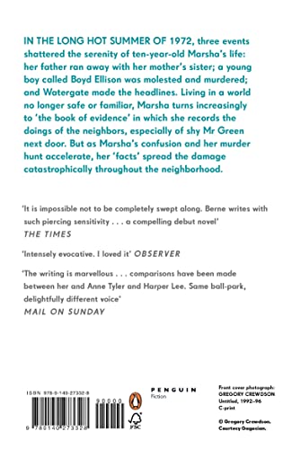 Details: In the long hot summer of 1972, three events shattered the serenity of ten year old Marsha's life: her father ran away with her mother's sister Ada; Boyd Ellison, a young boy, was molested and murdered; and Watergate made the headlines. Living in a world no longer safe or familiar, Marsha turns increasingly to 'the book of evidence' In which she records the doings of the neighbours, especially of shy Mr Green next door. But as Marsha's confusion and her murder hunt accelerate, her 'facts' Spread the damage cruelly and catastrophically throughout the neighbourhood.