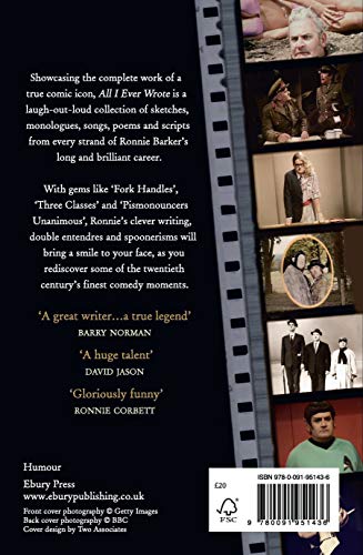 Ronnie Barker has long been known as one of Britain’s greatest comedy performers. But he was also responsible for writing much of the material he performed, often hiding the fact from the public by using a number of pen names. Showcasing the complete work of a true comic icon, All I Ever Wrote is a laugh-out-loud collection of sketches, monologues, songs, poems and scripts from every strand of Ronnie’s long and brilliant career. With gems like ‘Fork Handle’s,’ Three Classes’ and ‘Pismonouncers Unanimous', Ronnie’s clever writing, double entendres and spoonerisms will bring a smile to your face, as you rediscover some of the twentieth century’s finest comedy moments.