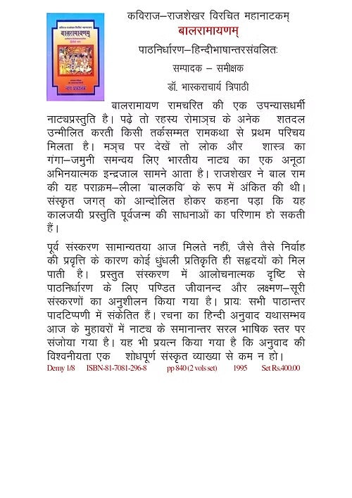 • Title: Baalaraamaayana (Rajasekhara Virachita Mahaanaataka)