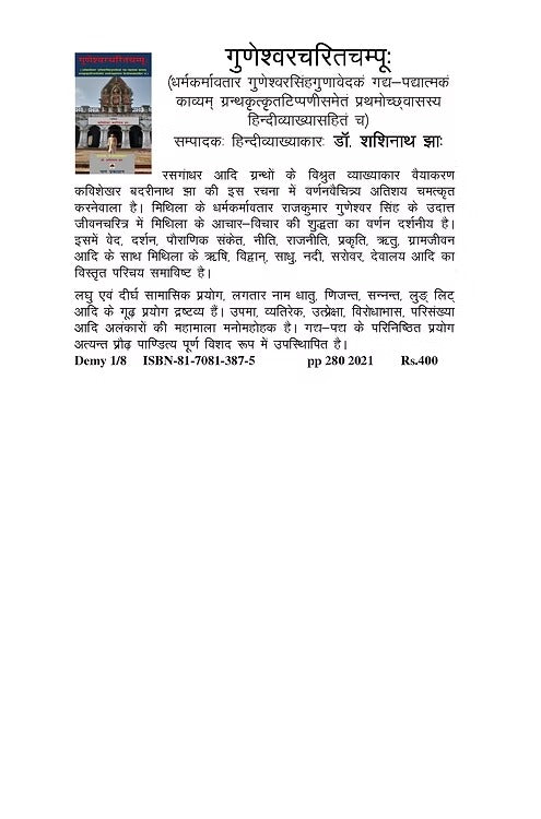(DHARMAKARMAVTAR GUNESHVARSINGHGUNAVEDAK GADYA PADMATAMAK KAVYAM GANTHKRITKRITATIPPANISAMETAM PRATHAMOCHCHVLSASYA HINDIOYAKHYASAHIT CH) EDITOR  HINDI VYAKHYAKAR DR. SASHINATH JHA