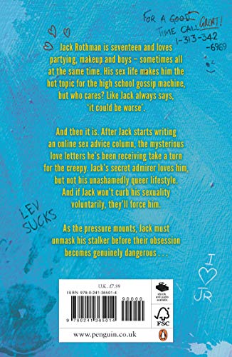 Details: My First time getting it in the butt was kind of weird. I think it's going to be weird for everyone's first time, though. Jack Rothman is seventeen. A solid student with a talent for art, he likes partying, makeup and boys. Sometimes all at the same time. His active, unashamed sex life makes him a red hot topic for the high school gossip machine, but Jack doesn't really care too much about what the crowd is saying about him. His mantra is: 'it could be worse.' and then it is. When Jack starts writing a teen sex advice column for his best friend's website, he begins to receive creepy and threatening love letters. His 'admirer' Is obsessed with Jack - they know who he's hanging out with, who he's sleeping with, who his mum is dating. And while they say they love Jack, they don't love his lifestyle. They want him to curb his sexuality and Personality. And if he won't, they will force him. As his stalker starts to Ratchet up the pressure, it's up to Jack and his friends to uncover their identity, before their love becomes genuinely dangerous.