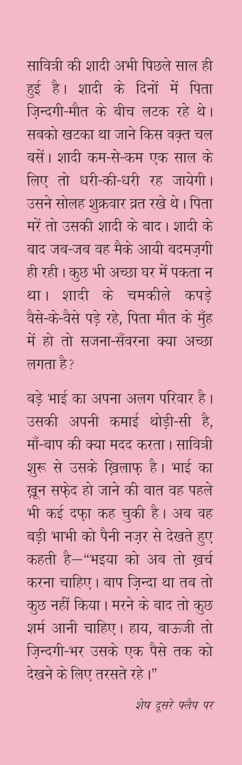 Details: सावित्री की शादी अभी पिछले साल ही हुई है। शादी के दिनों में पिता ज़िन्दगी-मौत के बीच लटक रहे थे। सबको खटका था जाने किस वक़्त चल बसें। शादी कम-से-कम एक साल के लिए तो धरी-की-धरी रह जायेगी। उसने सोलह शुक्रवार व्रत रखे थे। पिता मरें तो उसकी शादी के बाद । शादी के बाद जब-जब वह मैके आयी बदमज़गी ही रही। कुछ भी अच्छा घर में पकता न था। शादी के चमकीले कपड़े वैसे-के-वैसे पड़े रहे, पिता मौत के मुँह में हो तो सजना-सँवरना क्या अच्छा लगता है? बड़े भाई का अपना अलग परिवार है। उसकी अपनी कमाई थोड़ी-सी है, माँ-बाप की क्या मदद करता । सावित्री शुरू से उसके ख़िलाफ़ है। भाई का खून सफेद हो जाने की बात वह पहले भी कई दफा कह चुकी है। अब वह बड़ी भाभी को पैनी नज़र से देखते हुए कहती है- "भइया को अब तो ख़र्च करना चाहिए। बाप ज़िन्दा था तब तो कुछ नहीं किया। मरने के बाद तो कुछ शर्म आनी चाहिए। हाय, बाऊजी तो ज़िन्दगी-भर उसके एक पैसे तक को देखने के लिए तरसते रहे।" हालाँकि सच यह है कि नौकरी लगने के आठ साल बाद तक बड़ा क्वाँरा रहा, वेतन की पाई-पाई घर देता था । बाहर कुछ और औरतें पहुँच गयी हैं। स्यापा फिर से शुरू हो गया है। सावित्री कमर कसे दायरे में पहुँच गयी है। कई तरफ़ से 'न, न' की आवाजें आयीं। लेकिन वह कहाँ मानने वाली थी। भरे गले से बोली, “हाय तुम सबको भगवान का वास्ता। मुझे कोई न रोके । मेरा शेर जैसा बाप मर गया। हाय रब्ब जी!" बड़ी भौजाई थोड़ी सीधी है। उसे स्यापे के कायदे-कानून का पूरा ज्ञान नहीं। वह सुर-ताल के साथ दूसरी औरतों का साथ नहीं दे पा रही। एक बड़ी-बूढ़ी ने उसे तीखी आवाज़ में डाँटा - "अजी तुम्हें शर्म आनी चाहिए। उधर देखो, कल की ब्याही सावित्री कैसे ताल के साथ ताल मिलाकर स्यापा कर रही है।" - 'मातम' कहानी से