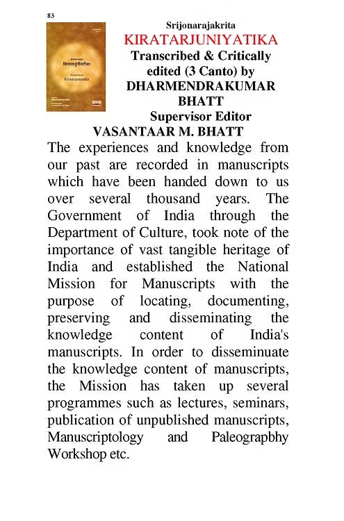 The present text is one of such Gurukul scheme projects critically edited by Dharmendra Kumar Bhatt under the Guru, Vasant Kumar Bhatt.