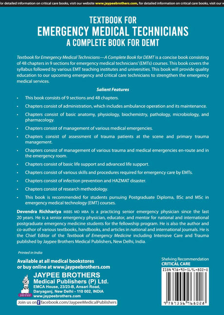 TEXTBOOK FOR EMERGENCY MEDICAL TECHNICIANS A COMPLETE BOOK FOR DEMT (AS PER THE LATEST SYLLABUS AND
