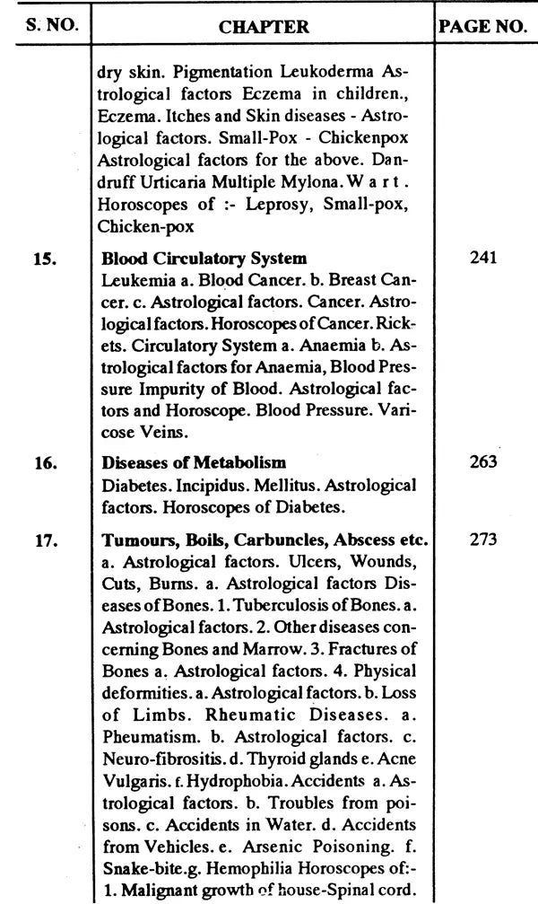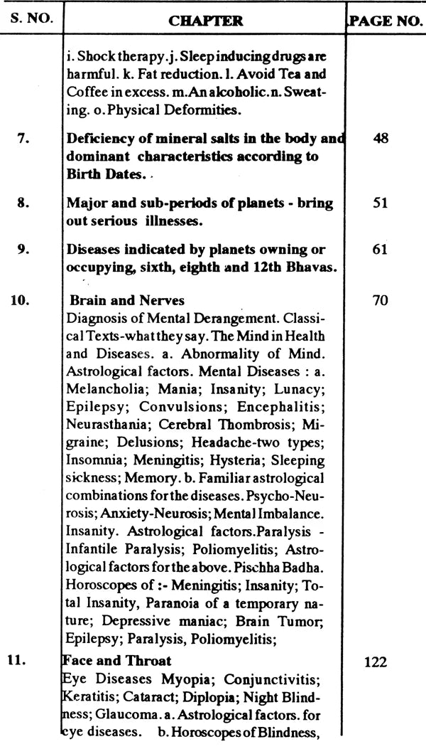 ১. **চিকিৎসা জ্যোতিষের ভূমিকা**: চিকিৎসা জ্যোতিষের নীতিগুলির একটি সংক্ষিপ্তসার, স্বাস্থ্য সমস্যা নির্ণয়ে এর প্রাসঙ্গিকতা এবং প্রয়োগ ব্যাখ্যা করে।
