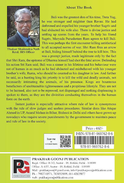 This book offers a fresh perspective on the epic Ramayana, focusing on the complex moral and ethical dilemmas within the story. It examines the controversial episode of Bali’s death, highlighting the tension between divine justice and human norms of war. Through a detailed retelling, the author explores the actions of Lord Ram, the epitome of Dharma, and the rationale behind decisions that challenge conventional morality. This insightful narrative encourages readers to rethink familiar tales, providing a deeper understanding of righteousness, justice, and ethical responsibility in the Treta Yug