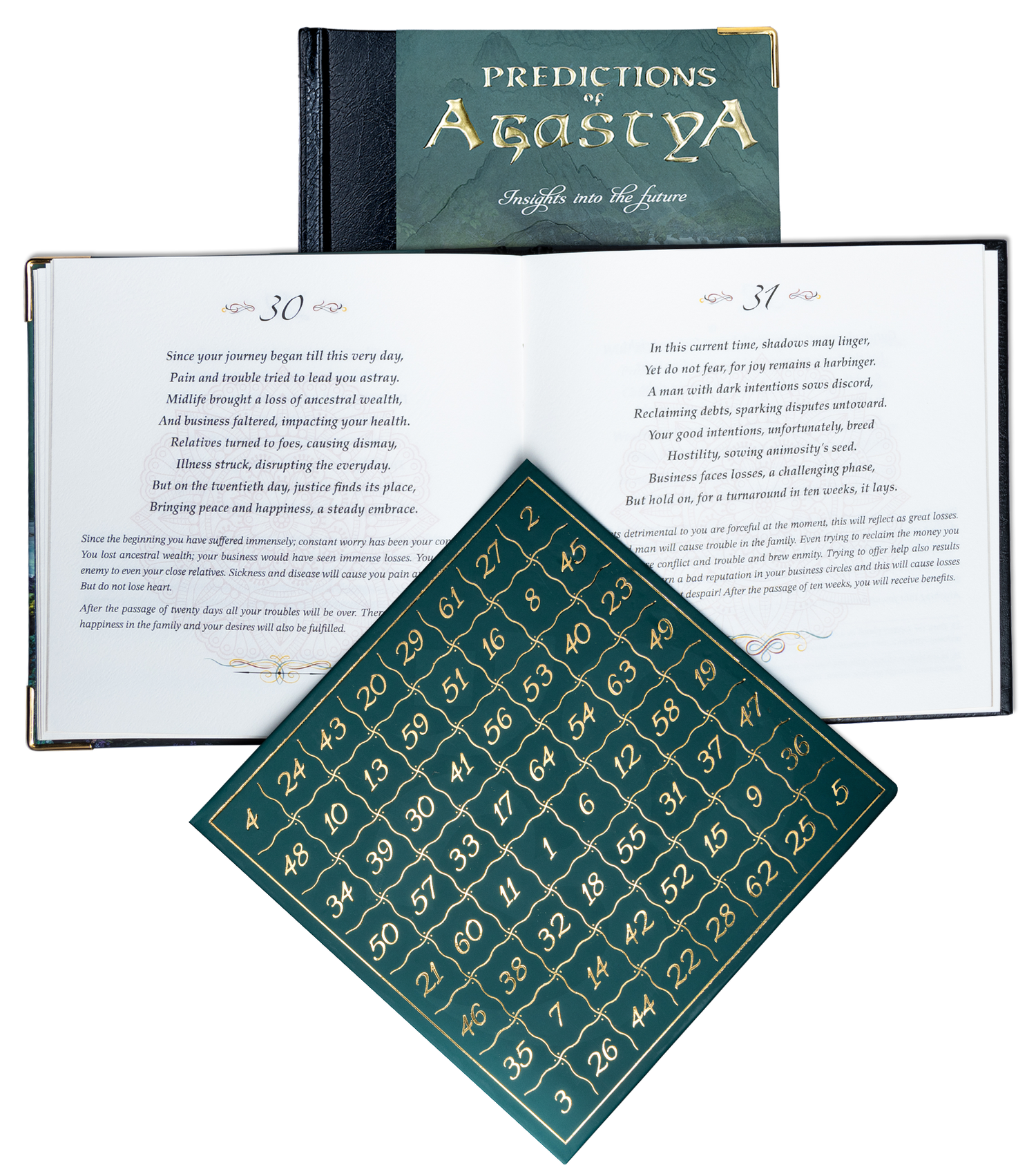 Embark on a transformative journey with Predictions of Agastya: Insights into Your Future, a powerful tool that brings the timeless wisdom of the great sage Agastya to modern seekers. Mahaṛṣi Agastya, revered as the father of the Tamil language, is divinely bestowed with the knowledge of language and healing by Lord Śiva. He is credited with compiling the first Tamil grammar, Agattiyam, and authored significant works in medicinal sciences, including Āyurveda and Siddha.