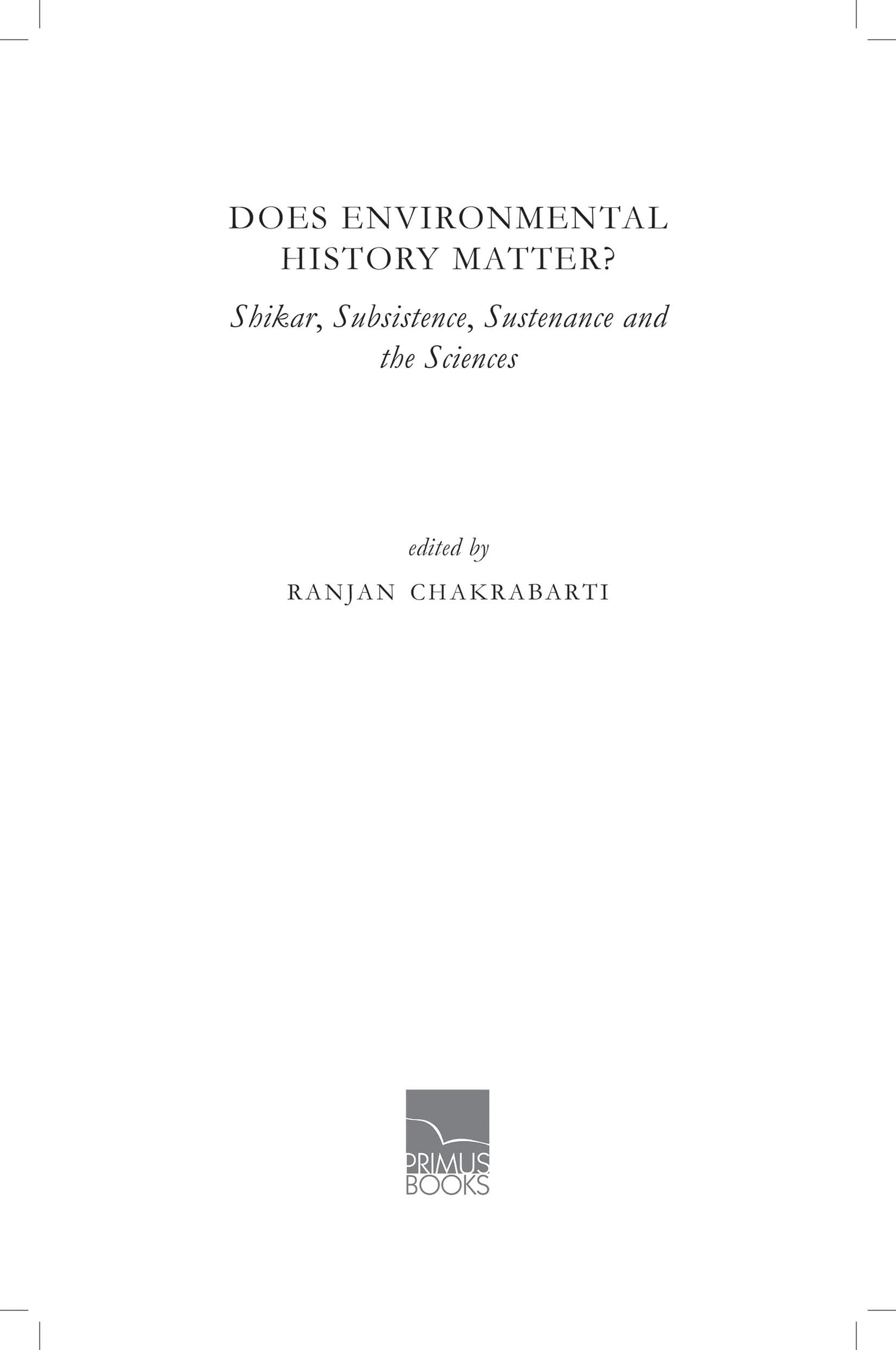 Primus Books - Does Environmental History Matter? Shikar, Subsistence, Sustenance and the Sciences