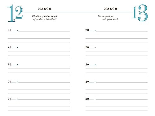 Details: A mother and child share so much together-countlesss milestones, simple joys, unexpected challenges, and all the little surprising moments in between. This five-year journal will help you capture it all-simplyy turn to today's date and take a few moments to answer the question at the top of the page. As the journal fills, it will become a loving record and cherished family keepsake.
