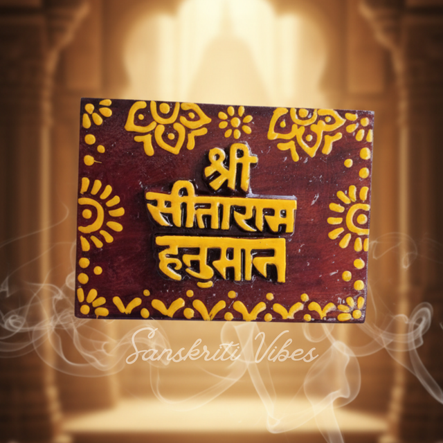Invite the divine blessings of Shri Sita Ram and Hanuman Ji with this authentic Handmade Shri Sita Ram Hanuman Ji Naam Sewa Kadam Wood idol, and experience the divine presence in your daily spiritual practices.