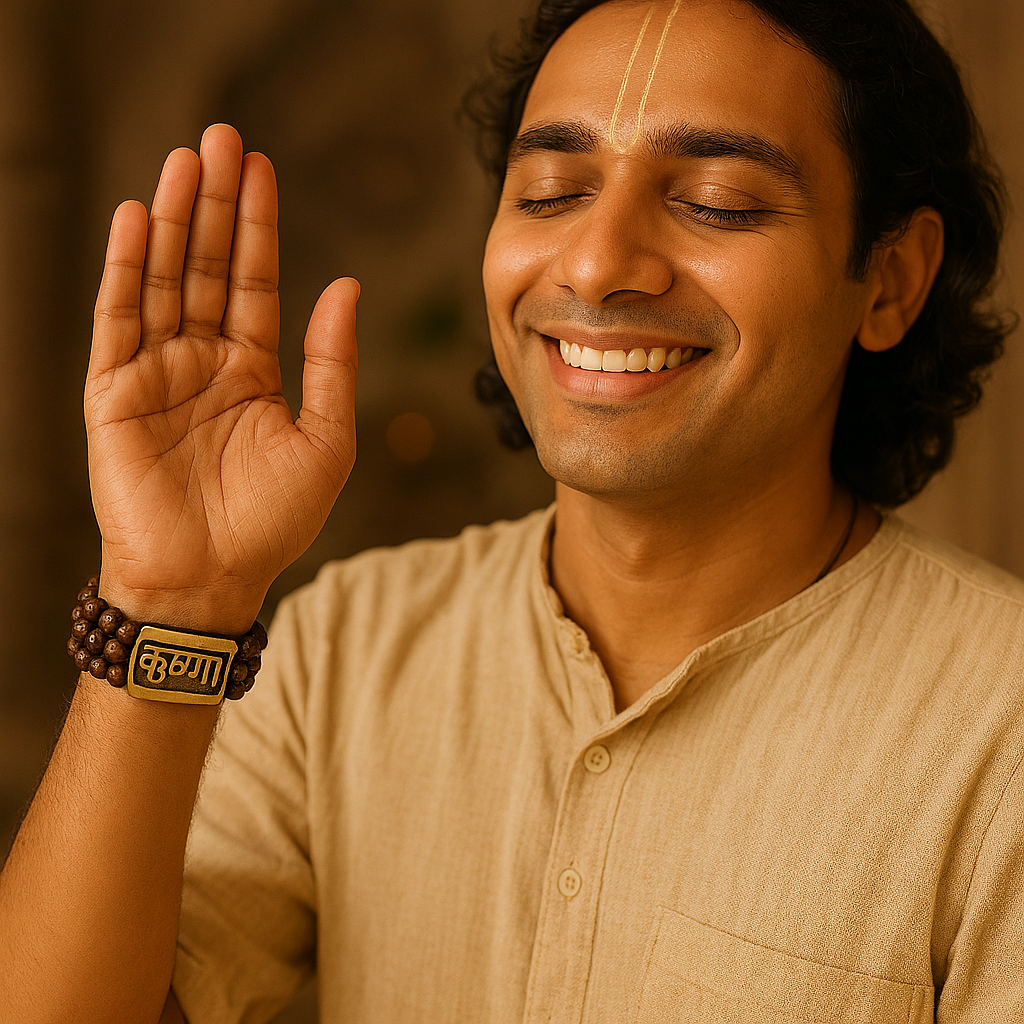 Tulsi wood is considered sacred in Hinduism, known for its purifying and protective qualities. Wearing this bracelet is believed to bring divine protection and peace while connecting you with the grace of Shri Krishna. The adjustable design ensures that it fits comfortably on various wrist sizes, making it perfect for daily wear, spiritual rituals, or as a meaningful gift for loved ones.