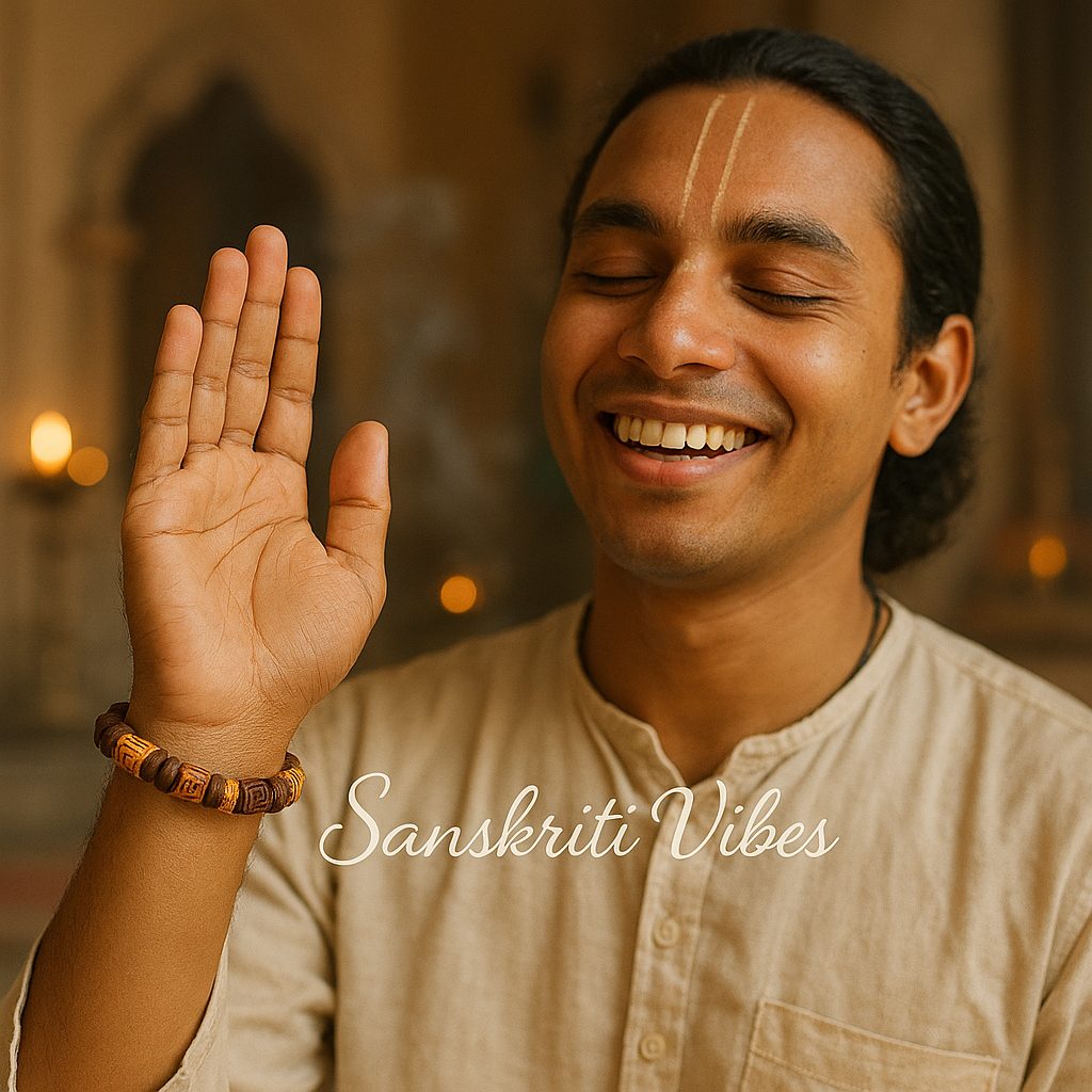 Experience the blessings of Shri Radha and the spiritual power of Tulsi with this elegant, handcrafted bracelet.