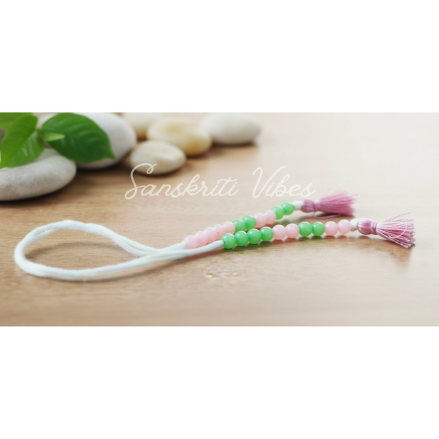 Japa Counting Beads – Pink & Green Round Beads for Mala, Meditation, and Prayer