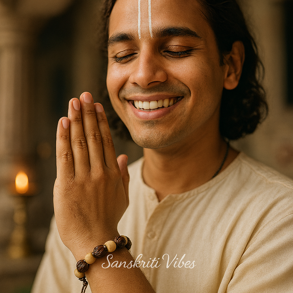 The adjustable pattern ensures a comfortable fit, making this bracelet suitable for people of all wrist sizes. Whether worn during meditation, prayer, or as a daily spiritual accessory, the Lotus Beads Tulsi Bracelet serves as a constant reminder of devotion and divine connection.