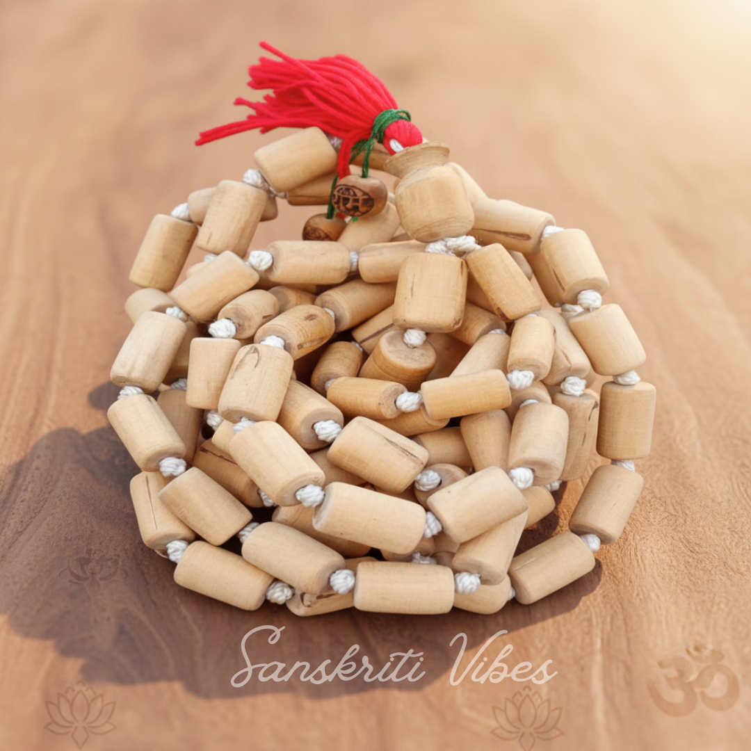 Tulasi Japa Mala with Cylindrical Beads – 16mm Tulsi Japa Mala for Chanting & Meditation