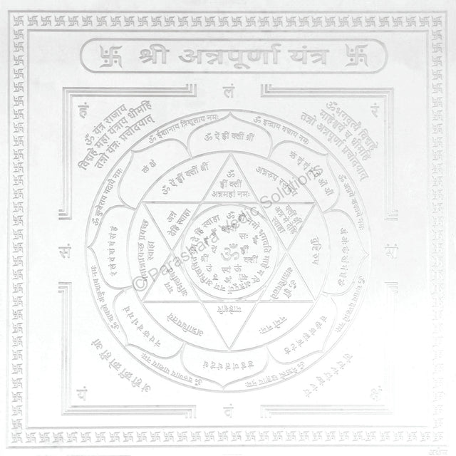 Arkam Annapurna Yantra / Annapoorna Yantra - Silver Plated Copper - (4 x 4 inches, Silver) is backordered and will ship as soon as it is back in stock.