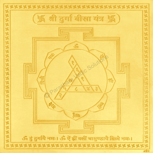 Arkam Durga Beesa Yantra / Durga Bisa Yantra - Gold Plated Copper - (6 x 6 inches, Golden)
