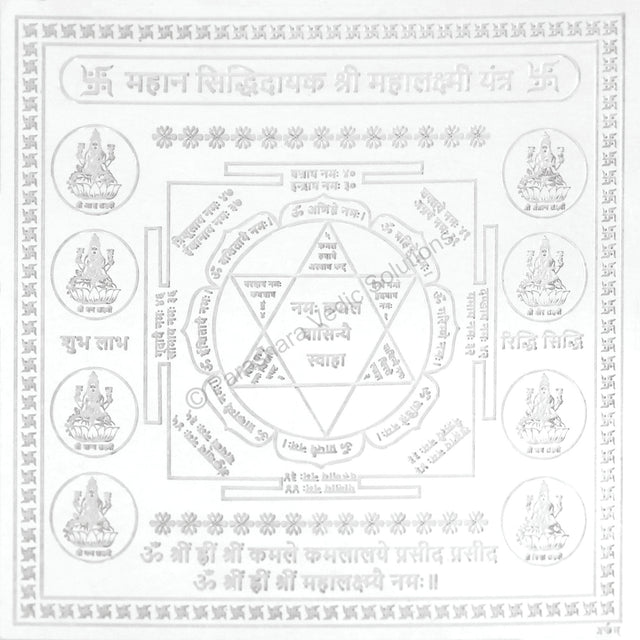 Arkam Mahalakshmi Yantra / Mahalaxmi Yantra - Silver Plated Copper - (4 x 4 inches, Silver)