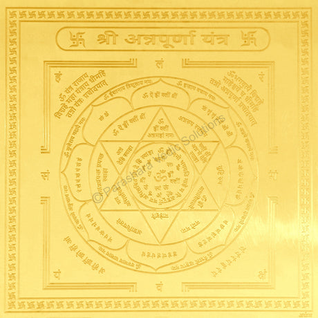 Arkam Annapurna Yantra / Annapoorna Yantra - Gold Plated Copper - (4 x 4 inches, Golden)