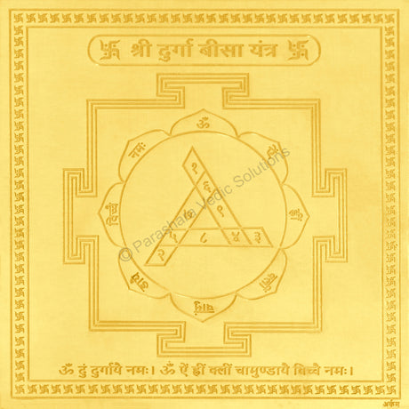Arkam Durga Beesa Yantra / Durga Bisa Yantra - Gold Plated Copper - (6 x 6 inches, Golden)